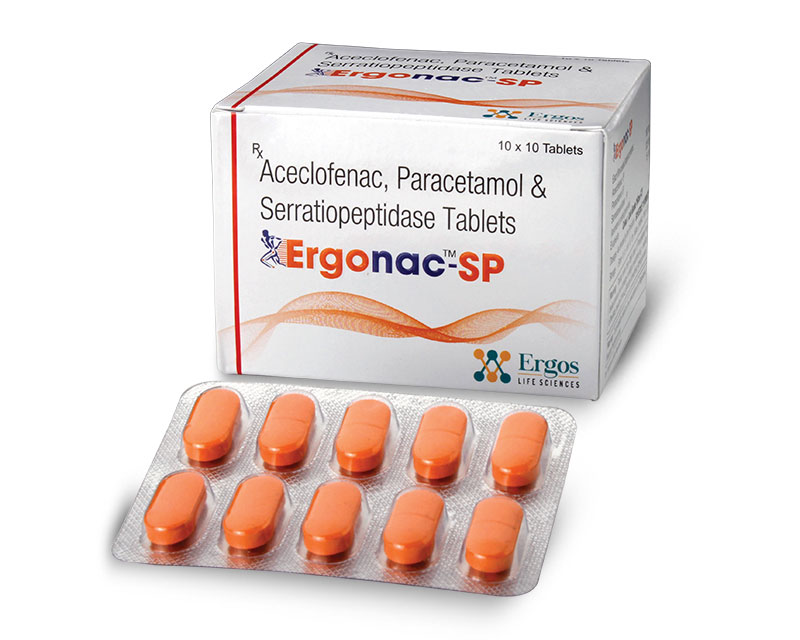 Each film coated tablet contains : Aceclofenac IP 100 mg, Paracetamol IP 325 mg and Serratiopeptidase IP 15 mg