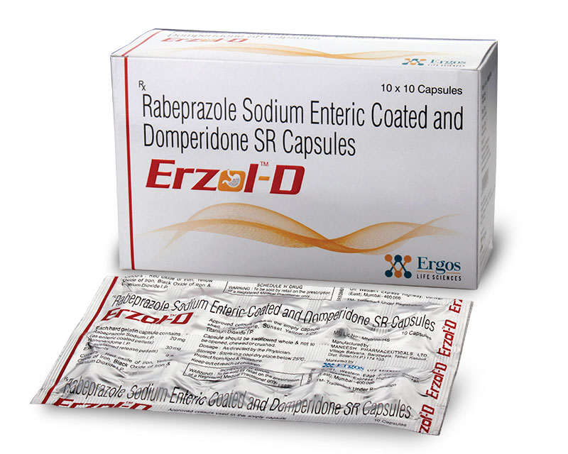 Each hard gelatin capsules contains: Rabeprazole Sodium IP 20 mg (as enteric coated pellets) and Domperidone IP 30 mg (as sustained release pellets)