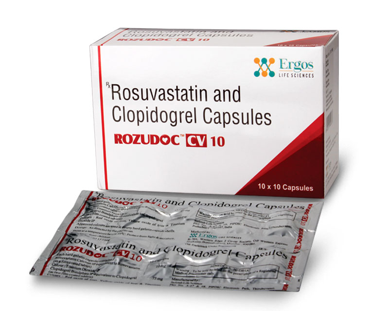 Each hard gelatin capsule contains: Rosuvastatin Calcium IP equivalent to Rosuvastatin 10 mg + Clopidogrel Bisulphate IP equivalent to Clopidogrel 75mg.