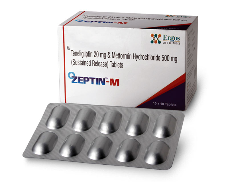 Each film coated tablet contains: Teneligliptin Hydrobromide Hydrate equivalent to Teneligliptin 20 mg + Metformin Hydrochloride IP 500mg (In sustained Release Form)